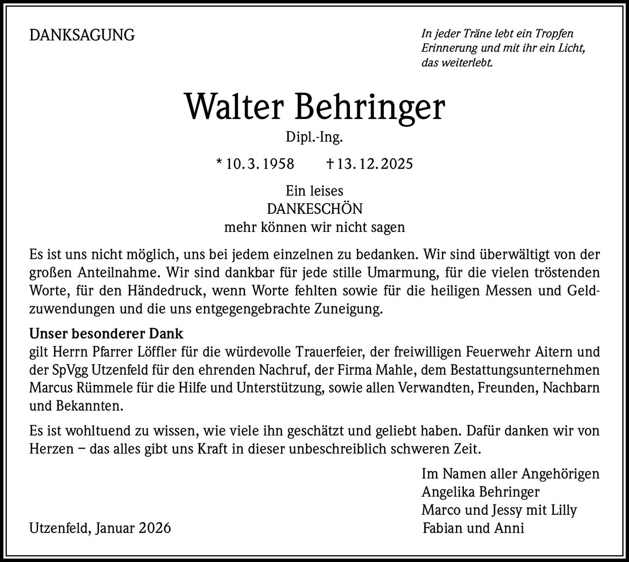 10. März 1958 - 13. Dezember 2025