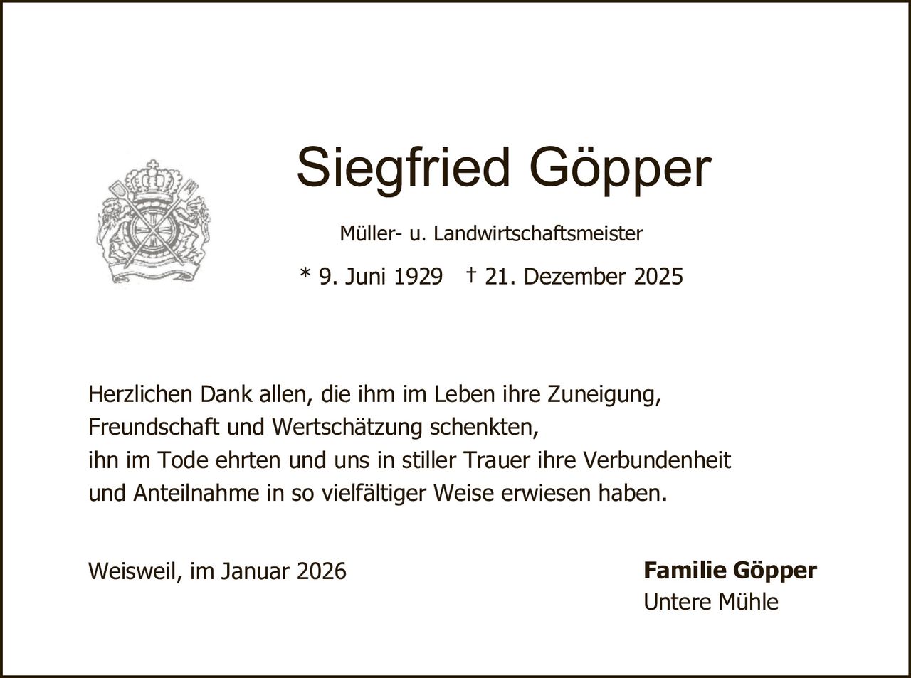 9. Juni 1929 - 21. Dezember 2025