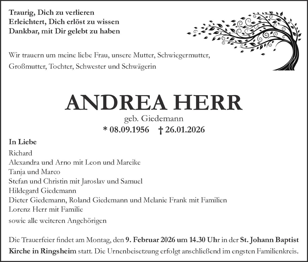 8. September 1956 - 26. Januar 2026